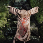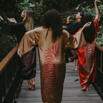 100% silk hand-dyed in warm tones. Hand-painted with a coral reef–inspired motif.